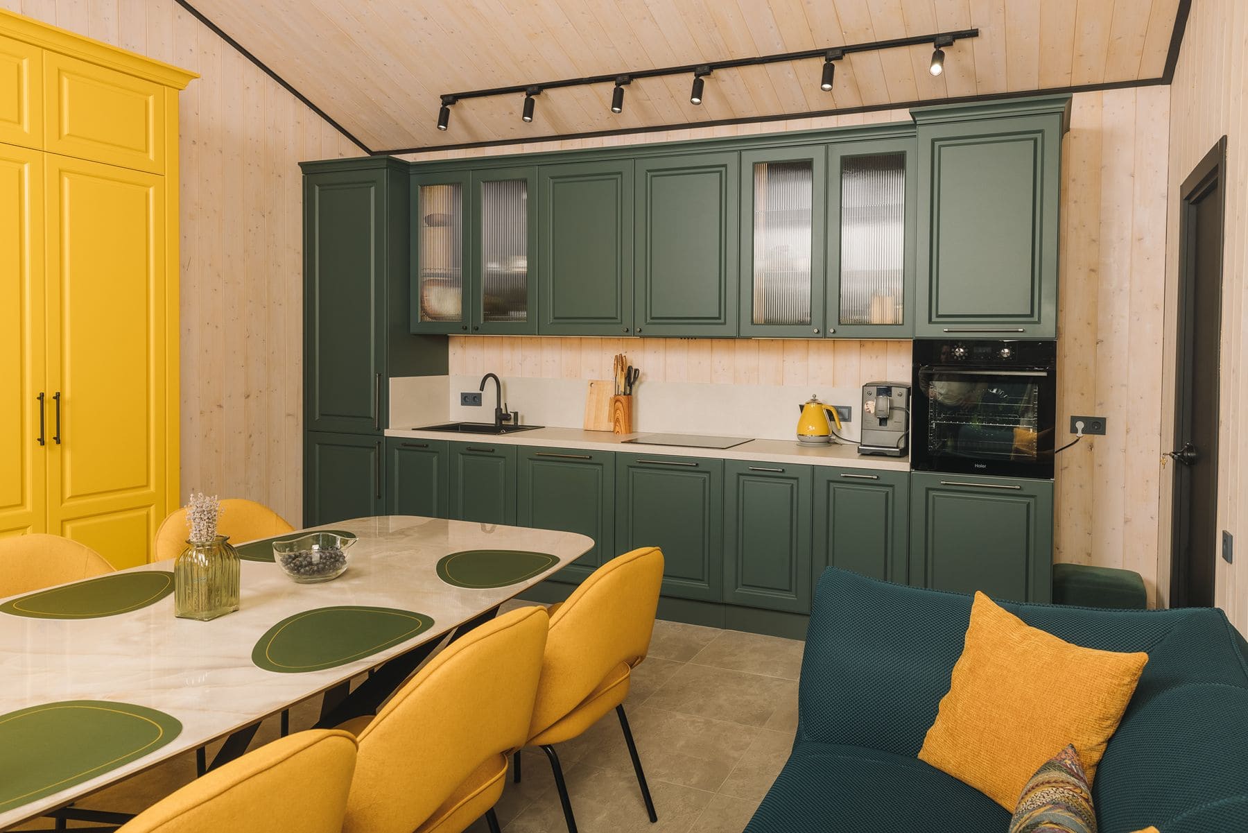 В кухне мне больше всего нравится этот сочный цвет, который заставляет меня каждый день радоваться. Для меня кухня - это место для ритуалов, ведь только на ней я полюбила готовить!